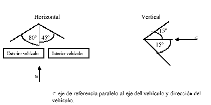 horizontal hacia el exterior del vehículo de 80º y